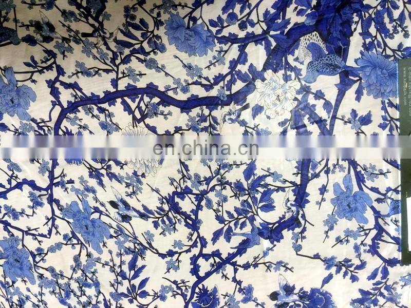 Hangzhou Printed Blue and White Porcelain Fabric Paisley 100% Pure Silk Chiffon Fabric
