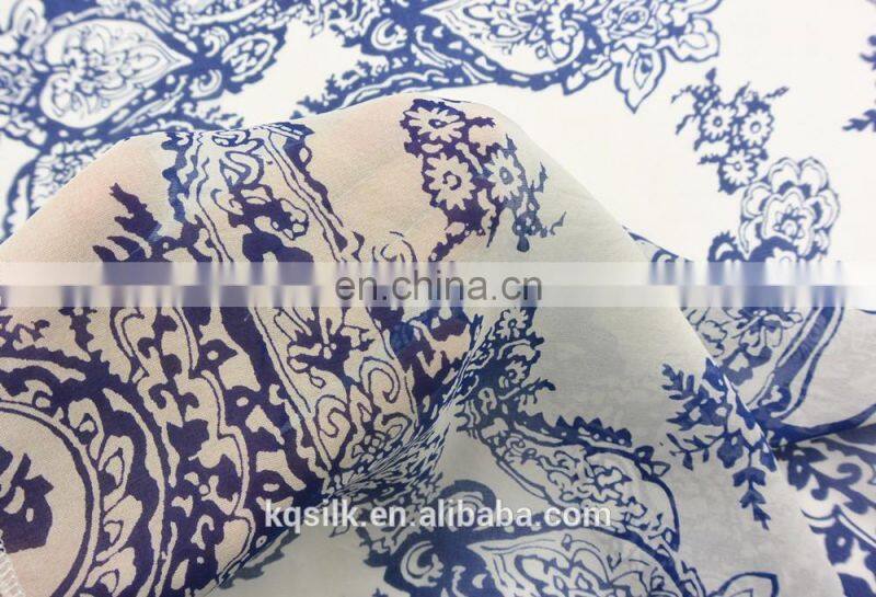 Hangzhou Printed Blue and White Porcelain Fabric Paisley 100% Pure Silk Chiffon Fabric