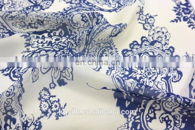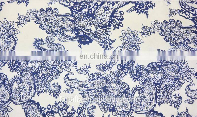 Home > Products > Screen Print Silk Fabric > Hangzhou Printed Blue and White Porcelain Fabric Paisley 100% Pure Silk Chiffon Fabric