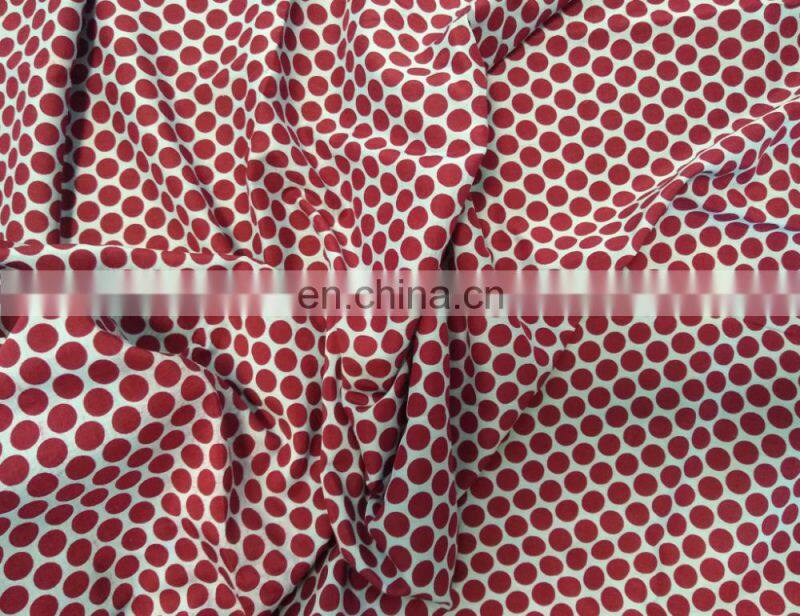 Home > Products > Screen Print Silk Fabric > Red & White Dots Printing Blended Nature Fabric 12 mm Silk Cotton