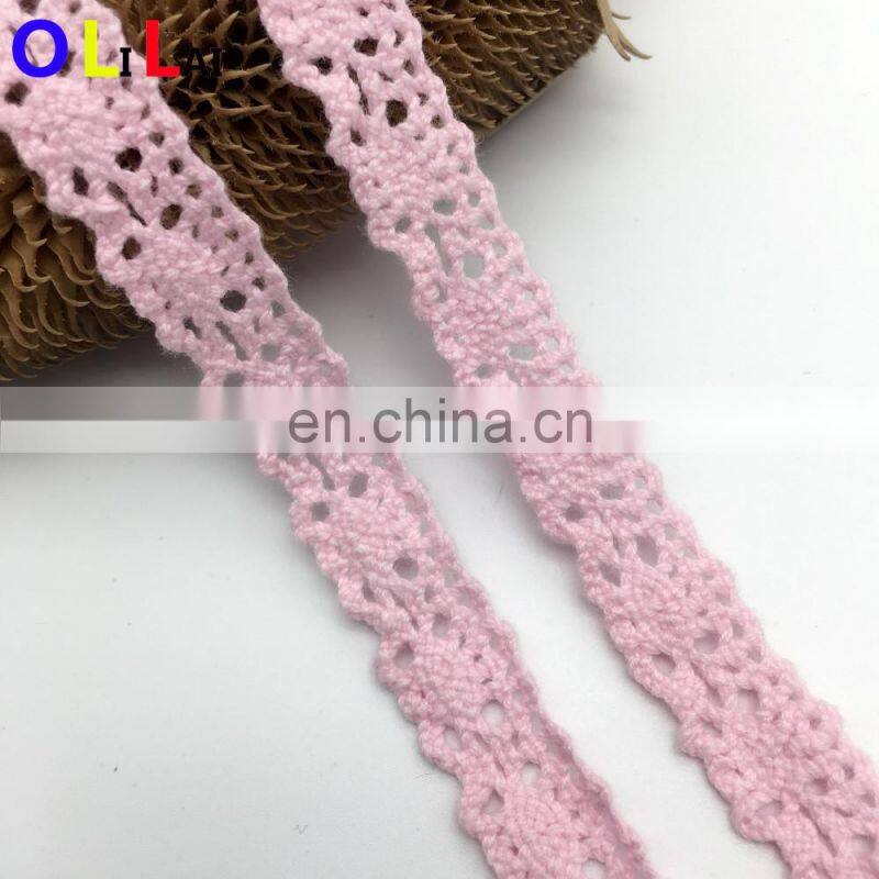 OLCT072 1.4cm Fashion Fine Pink Cotton Tulle African Lace Crochet for Ladies Dress