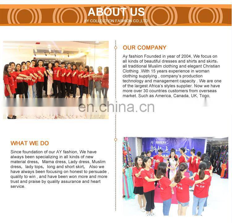 Ay was established in 2005; with 10 years experience in skirt series .Ay Fashion, devoted to skirt designing, developing, producing and selling, has become one of the largest Africa skirt manufacturers in China.
