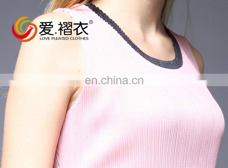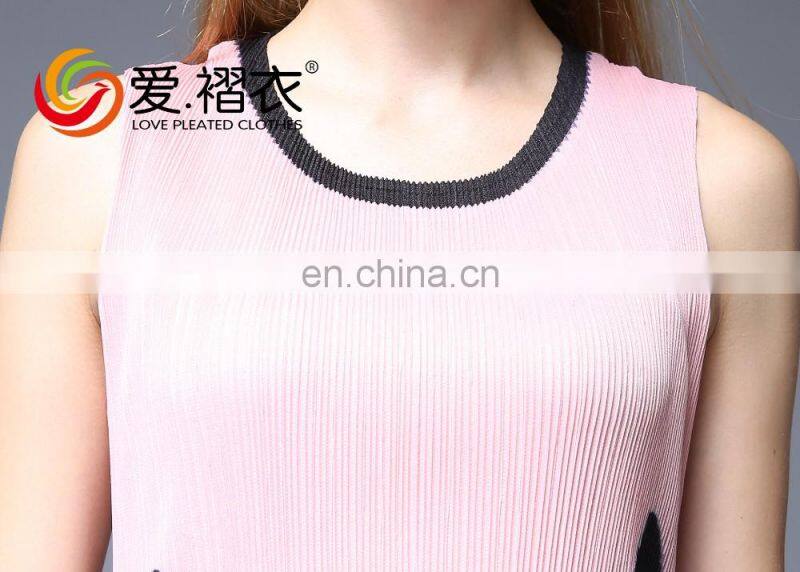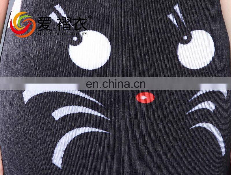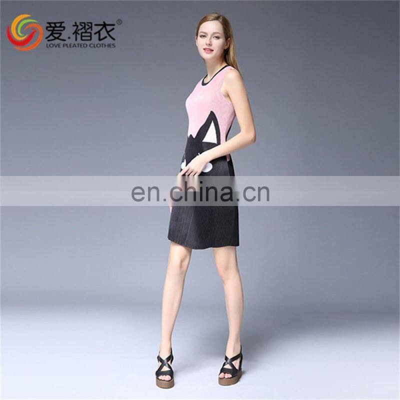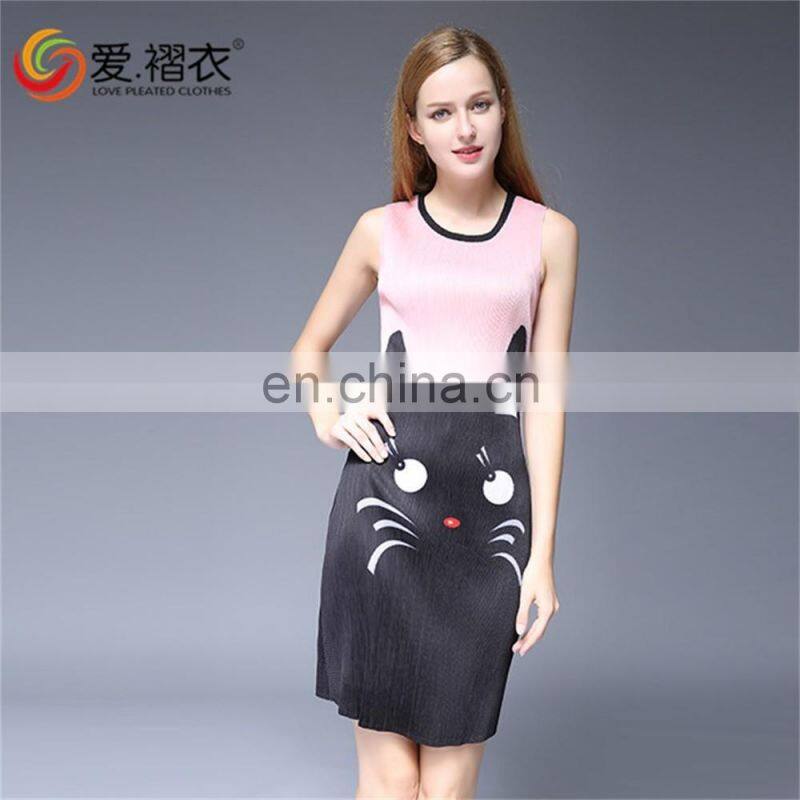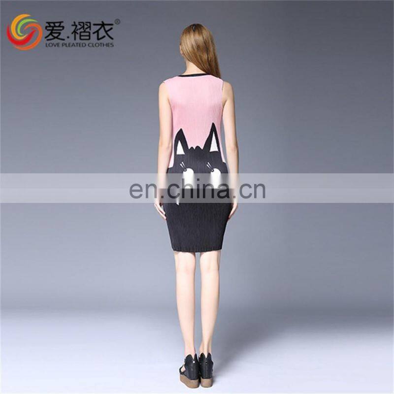 Fashion Wommen Clothes Pleated Cartoon Printed Sleeveless Round Neck Dress