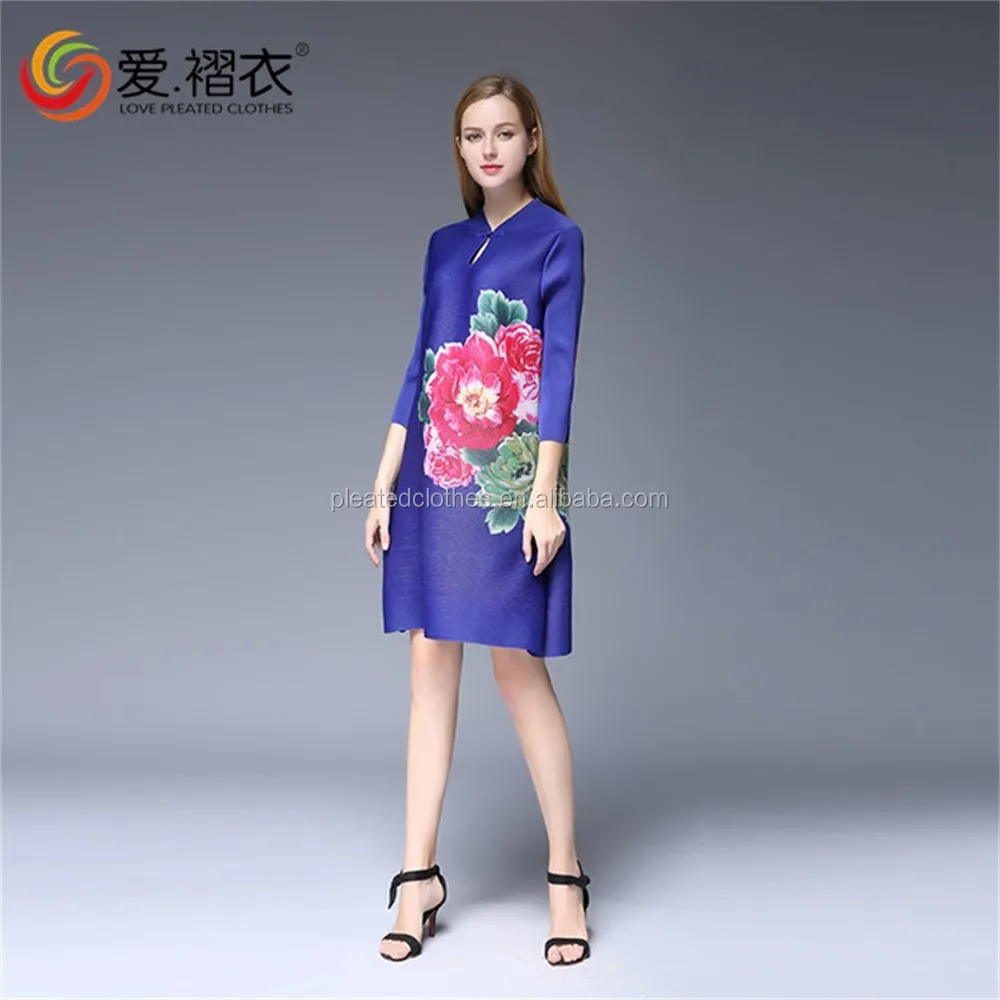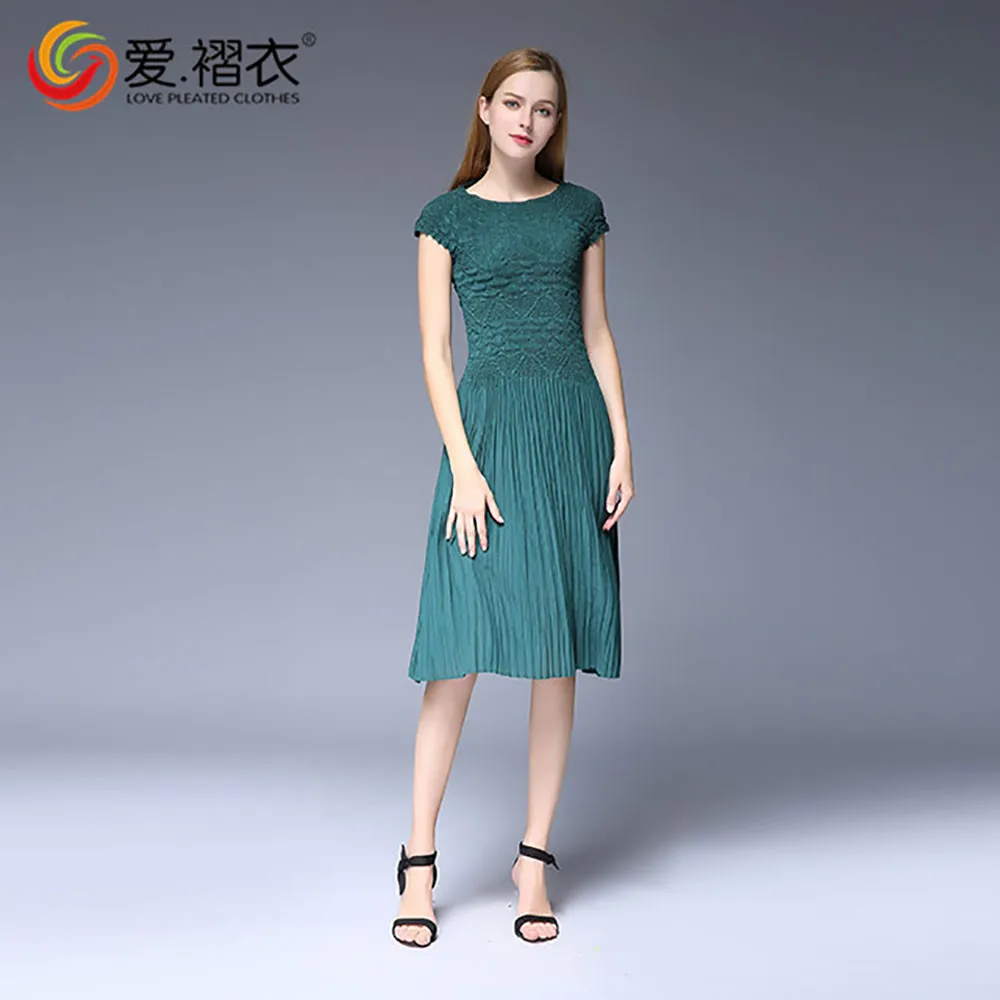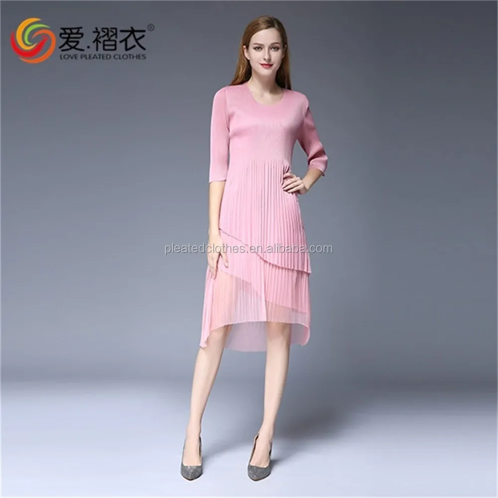 2016 Korea Style Round-Neck Chiffo Dress Wholesales PLeated Dress