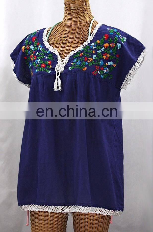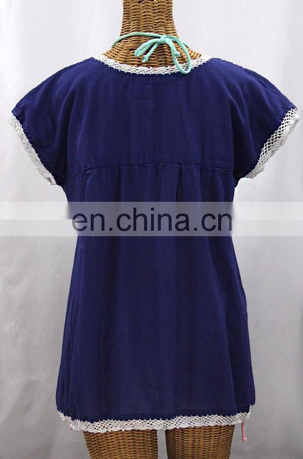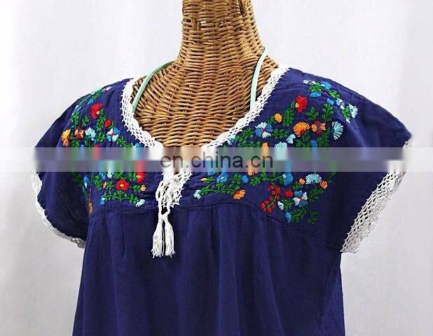 Handcrafted Tunic Multi Embroidered Mexican Stylish Dress 100% Cotton Blue Fabric Tunic For Girl's Colored Tunic