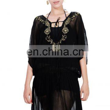 Chiffon Embroidered Kaftan.Chiffon embroidered kaftan top is must have for resort collection and is also perfect as a beach cover ups