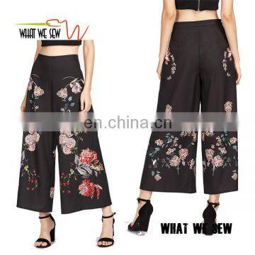 Wholesale Botanical Print Zip Side Wide Leg Pants For Women