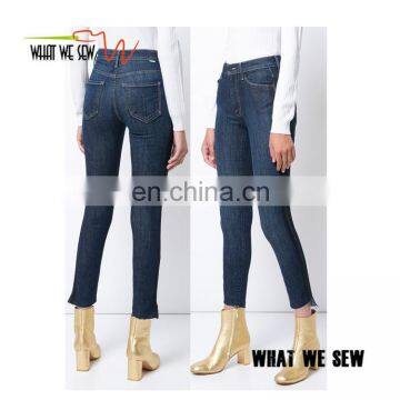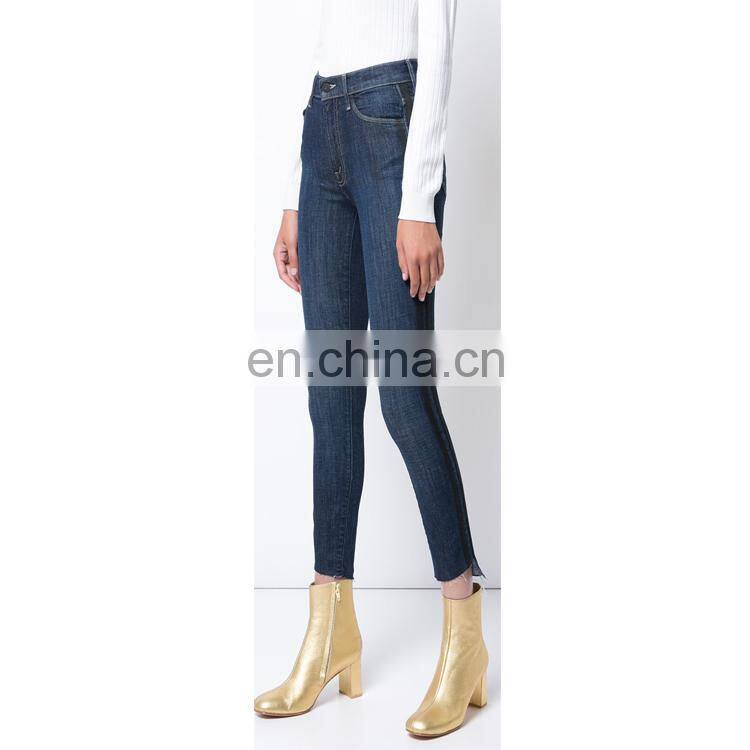 Blue sweeping racer custom skinny jeans women latest design denim jeans pants