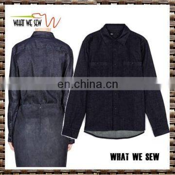 Womens Jeans Shirts Fashion Dark Navy Denim Shirts Cotton Shirts Custom