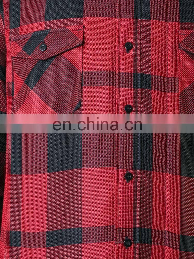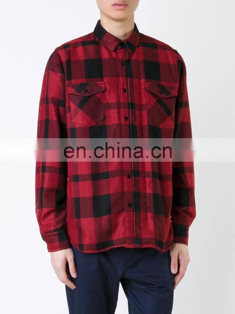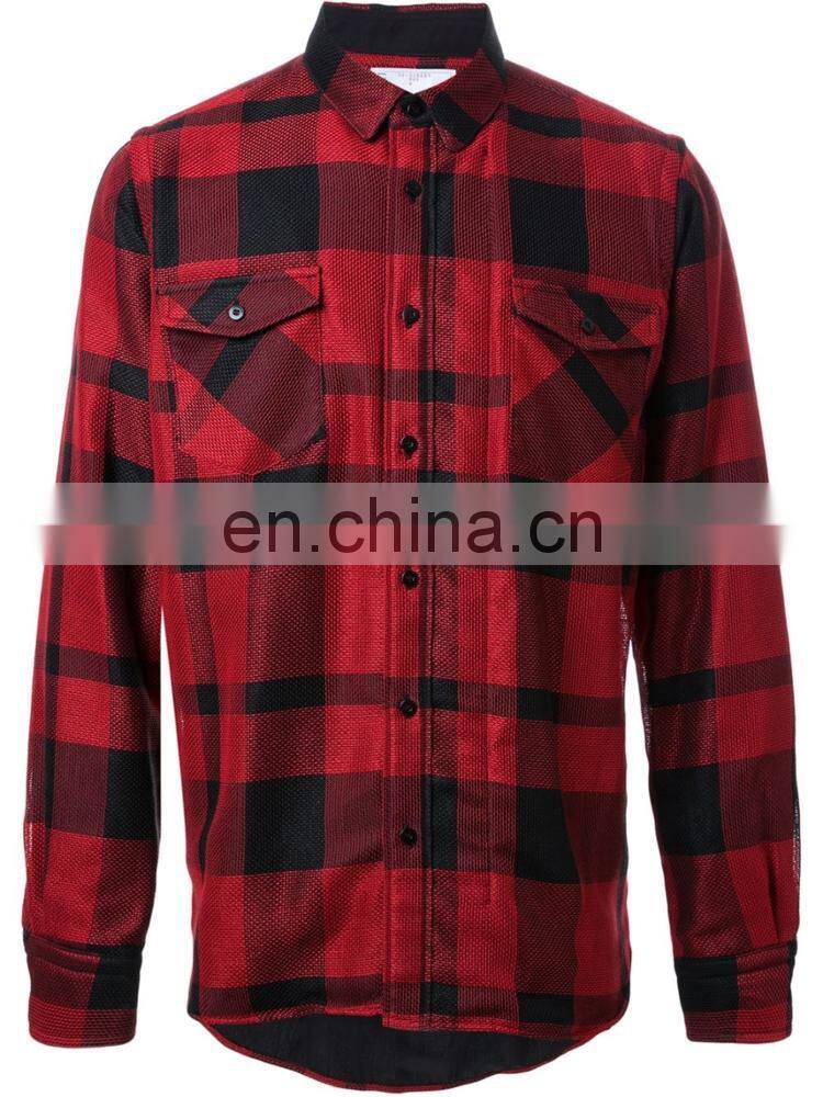 Red and black checked shirt from Sacai featuring a front button fastening for men shirt.