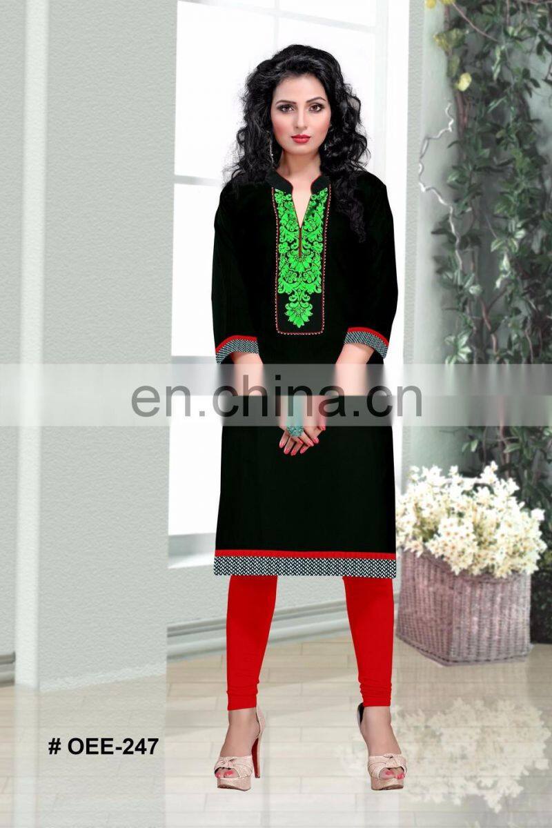 Embroidery neck design pattrn & plain dyed cottontunic kurits for girls
