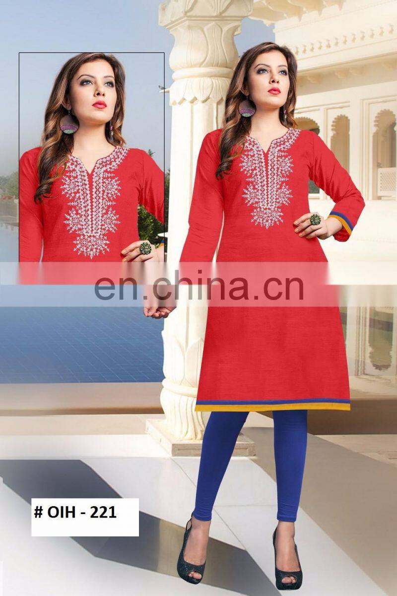 Embroidery neck design pattrn & plain dyed cottontunic kurits for girls