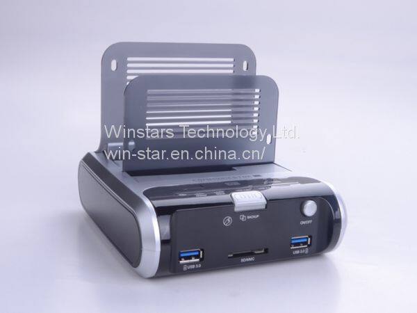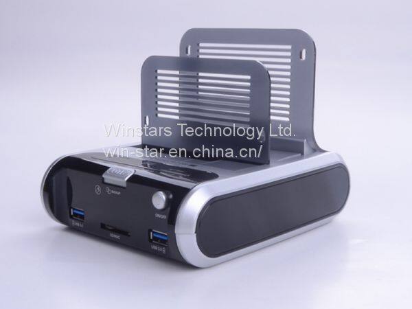 Our Smart Docking station can support dual HDD transfer to USB 3.0 High speed datea storage. It can compatible with all 2.5 Inch /3.5 Inch/Sata I/Sata 2.You can exchange HDD data with any PC by using USB 3.0 cable to connect storage device, HDD transfer speed upto 5Gbps, it’s quiet convenient and simply.With Card Reader and USB Hub function, make it more versitle.