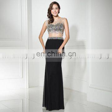 New Fashion Two-Piece Cap Sleeve Black Mermaid Crystal Beaded Evening Gowns Evening Dresses LX321