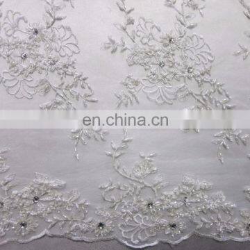 White Bridal Floral Mesh w/ Embroidery Beaded Lace Fabric.