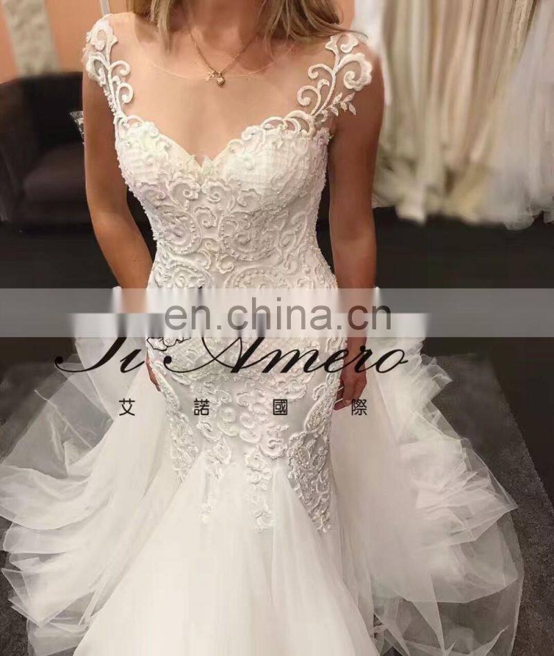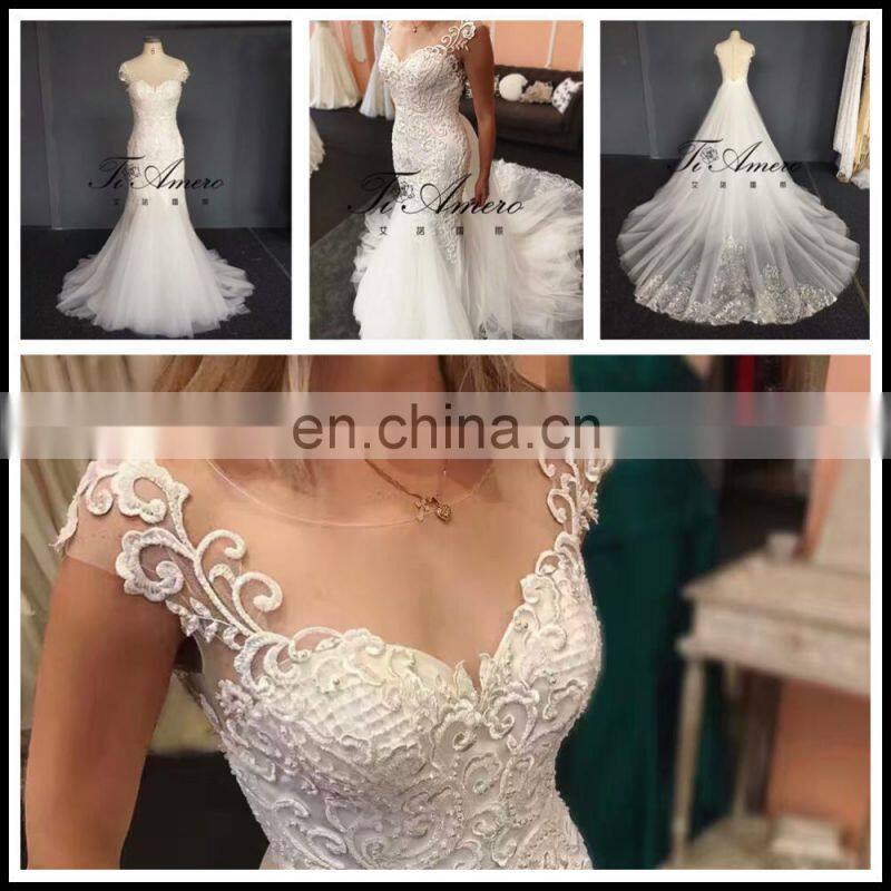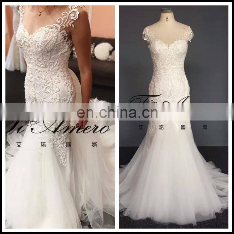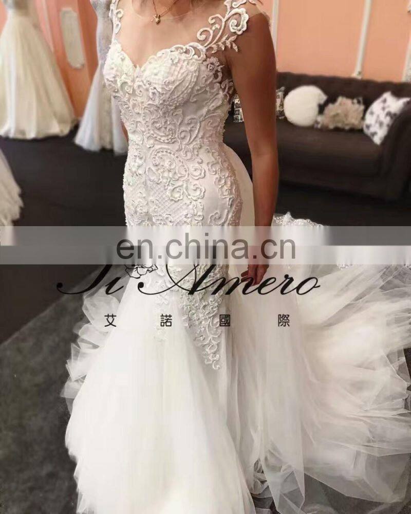 2017 High Quality Lace Beading Mermaid Wedding Dress With Detachable Train Tiamero 1A1175A