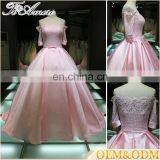 2016 China Manufacture Applique Long A Line Pink Party Evening Dress Hot Sell High Quality Ball Gown Wedding Dresses