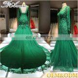 2017 Boat Neck Long Sleeves Lace Beading Evening Dress 3D Flowers Party Gown Tiamero 1A1046