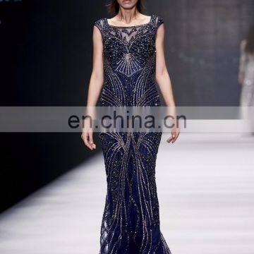 2017 B5427 Navy Color Halter Net Fabric Beaded Evening Dresses & Wedding Dresses