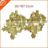 2014 Newest Yellow Gold Embroidered Lace Trim Flower Pattern for Suit