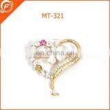 Hot Sale Rhineston Heart Shape Metal Dress Brooch With Chain