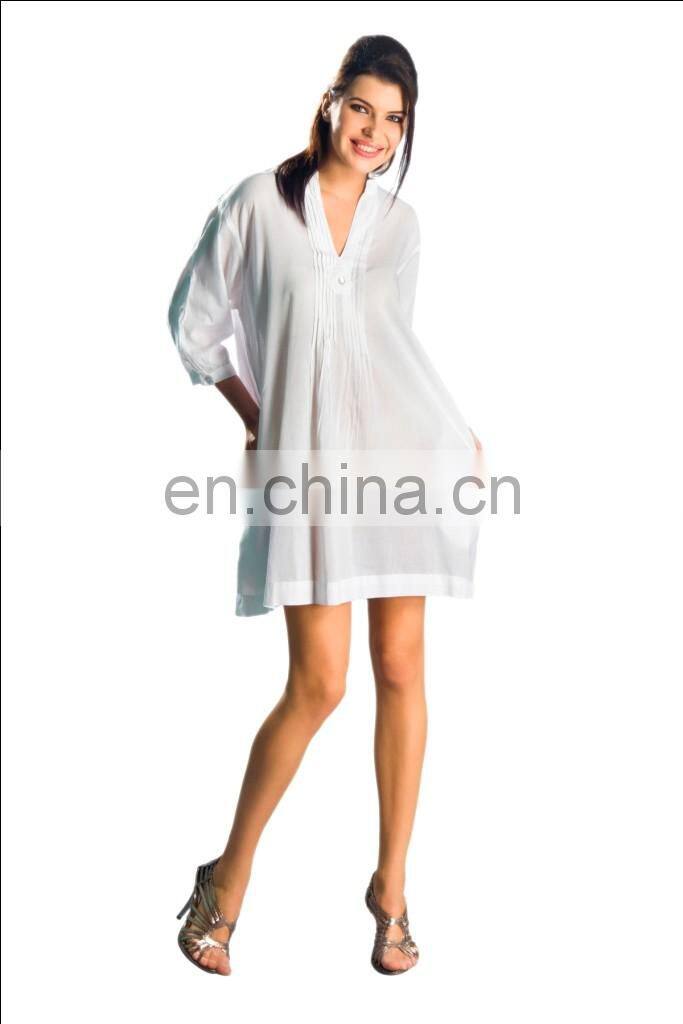 White Color Wholesale Cheap Short Size 100% Cotton Women Tunic 2016 USA Beach Wear