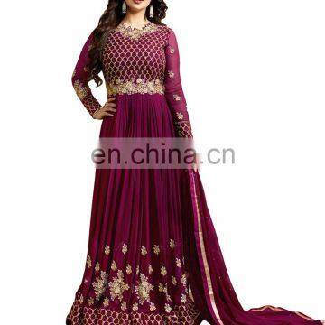 Dark Purple Color Designer Semi-Stitched Anarkali Dress Material 2017. This product includes Fabric : Georgette Top With Resham Embroidery, Diamond Stone Work, Lace Work Same Work On Back As Well With Big Flairs. Santoon Inner, Santoon Bottom, Naznin Dupatta With Stone And Lace Work. You Have to Get it stitched according to your size. Embroidery Work On Sleeves And Back A Well. Top Chest / Bust Customised upto maximum 42 inch, Length of The Top From Shoulder is 55 Inch (Alterable). Best Suited for special occasions like Wedding wear, engagement wear, festival party wear etc. You Can Also Check the Product Actual View Video on our YouTube Channel "Justkartit".