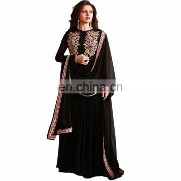 Drashti Dhami Black Colour Semi-Stitched Dress Material With Sequence And Thread Embroidery Work. This product includes Georgette Net & Dhupion Top With Sequence & Thread Embroidery Work Front & Back , Santoon Bottom & Inner, Naznin Dupatta With Lace Patta Work. You Have to Get it stitched according to your size. Chest / Bust Customised upto maximum 44 inch, Length of The Top From Shoulder is 60 Inch (Alterable). Giving you an awesome rich look.Best Suited for special occasions like Wedding wear, engagement wear, festival party wear etc.