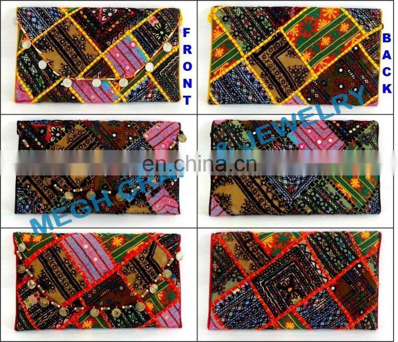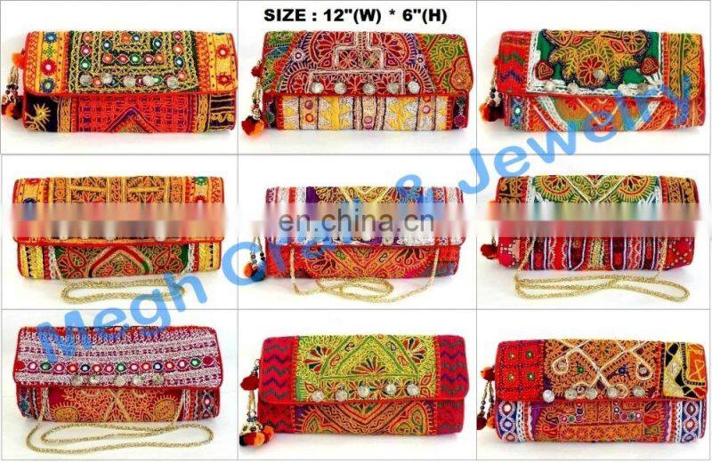 - Indian Gujarati Mirror work Hand Embroidery LATHER THELI/BAG