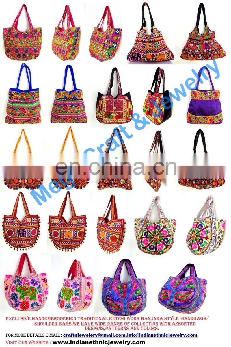 - Indian Cotton Kutch Embroidery mirror work handmade Vintage Patchwork Bag/handbag/Tote bag .