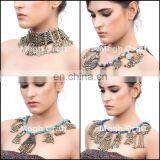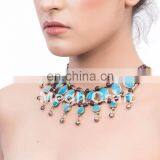 Kuchi Lapis Colored Stone Bib Necklace-Boho Necklace-tribal Fusion Necklace-gypsy Natural Stone Necklace-Bohemian Jewelry -