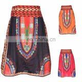 Women African Dashiki Hippie High Waist Skater Flared Pleated Short Skirt Dress High Waist Skater Flared Skirt