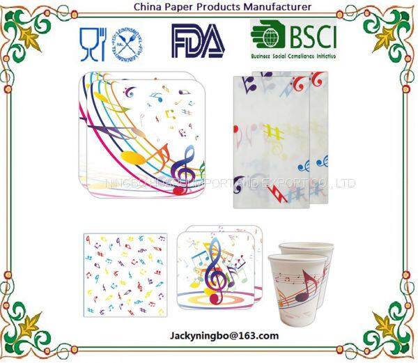 | Size | napkin:25*25/33*33/40*40cm +cup:7oz/8oz/9oz/12oz+plate:7"/9"/10"+straw:Dia.5mm x19.7mm |