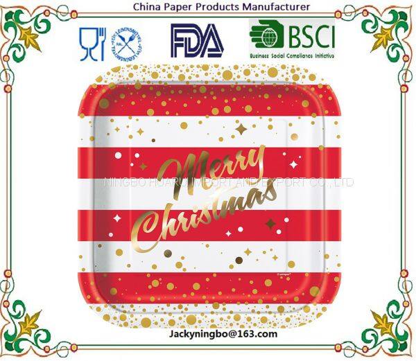 | Name | Amazon Hot Traditional Christmas Square Paper Lunch Plates Disposable Party Tableware |