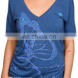 High Quality Fashion v Neck Ladies t Shirt With Your Own Customized Embroidery