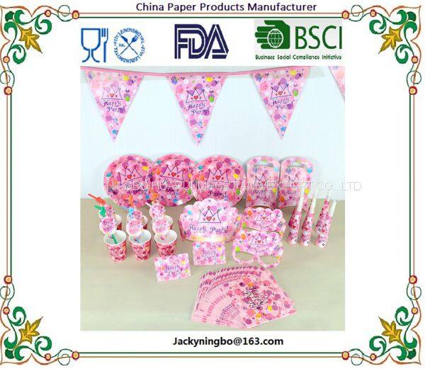 Party supplies birthday party tableware set, plate+cup+straw+tablecover+banner+wrapper+invitation