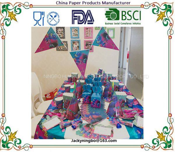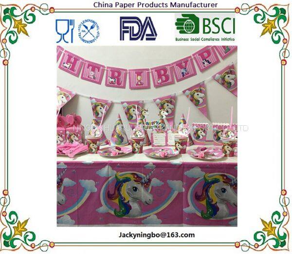 Party supplies birthday party tableware set, plate+cup+straw+tablecover+banner+wrapper+invitation