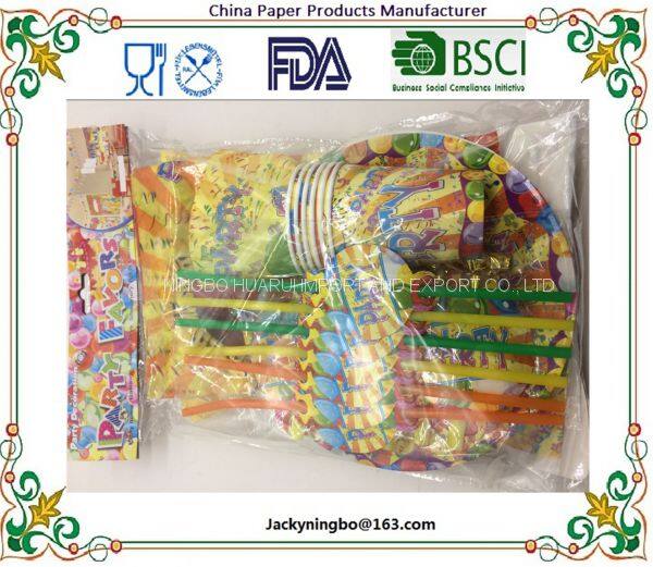 Ningbo Huarui are professional supplier of paper party tableware and other party decorations with fruitful experience in export to Europe,America,and Middle East.our products can pass FDA,CA65,LFGB,SGS,REACH test.Our customer include Amscan,Design Design,Creative Converting,CR Gibson,Daiso Japan... who saving 8-10% cost from working with us. Hope to find a chance to share our quality service and products with you too.