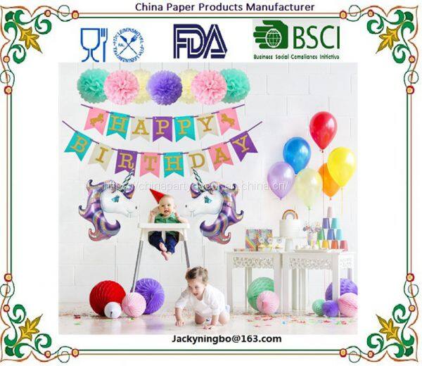 | Name | Ningbo Huarui Unicorn Theme Disposable Tableware Sets Paper Plates Cups Party Supplies Party Banner Wedding Kid Birthday Party Decoration |