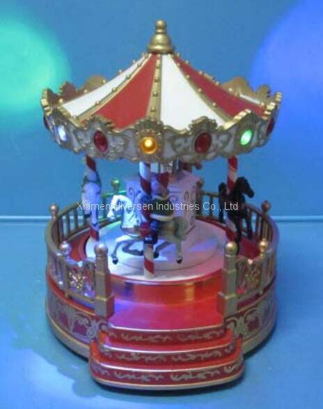 Polyresin Christmas Decoration 9"LED Carousel With Movement and One Song Music