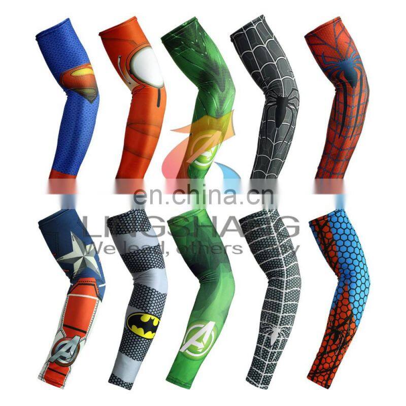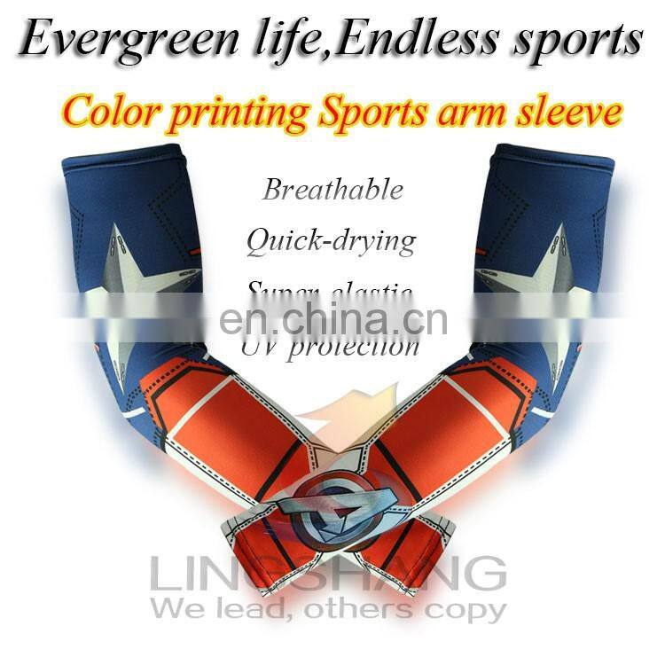 2016 Hot Wholesale New Design Color Printing Elastic UV Protection Quick Drying Breathable 100%Polyester Sports Wear Arm Sleeves