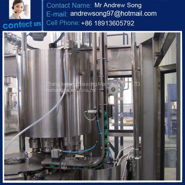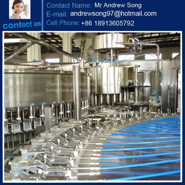 This XGF Washing-filling-capping 3-in-1unit:Beverage Machinery is used to produce polyester bottled mineral water, purified water, alcoholic beverage machinery and other non-gas beverage machinery. The CGF Wash-filling-capping 3-in-1unit:Beverage Machinery can finish all the process such as press bottle, filling and sealing, it can reduce the materials and Outsiders touch time, improve the sanitary conditions, production capacity and economic efficiency.