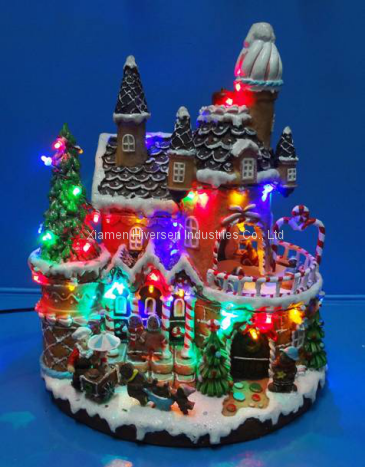 Polyresin Christmas Decoration 13” Led gingerbread house with rotating figurines
