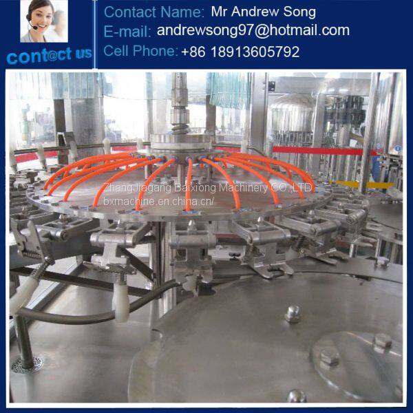 The machine whole process is automatic, The advanced OMRON programmed controller (PLC) is adopted to control the machine to run automatically while a transducer is used in the bottle-entering chains to adjust speeds and coordinated with the transducer of the main machine to make the operations of moving bottle forward more steadily and reliably. The machine is an idea preferred equipment for juice beverage makers because it is convenient to operate with higher automation while every part of the machine is inspected to run with photo electricity.