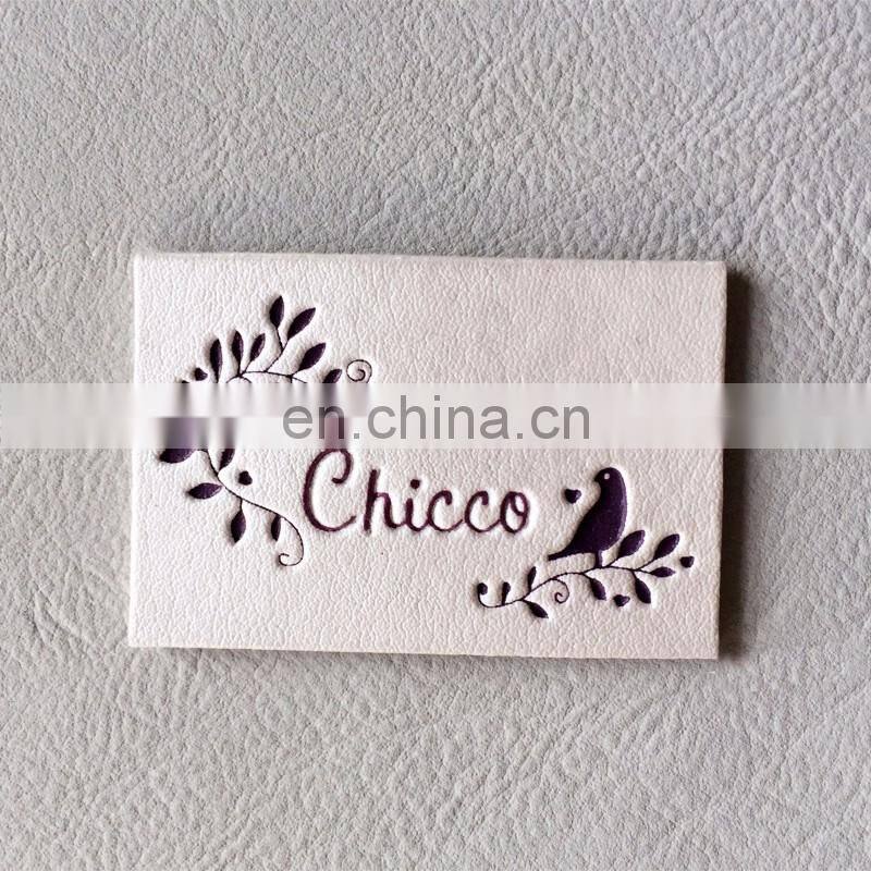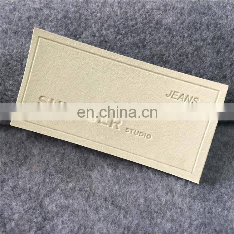 Hand made custom hot pressing jeans leather label design white leather label