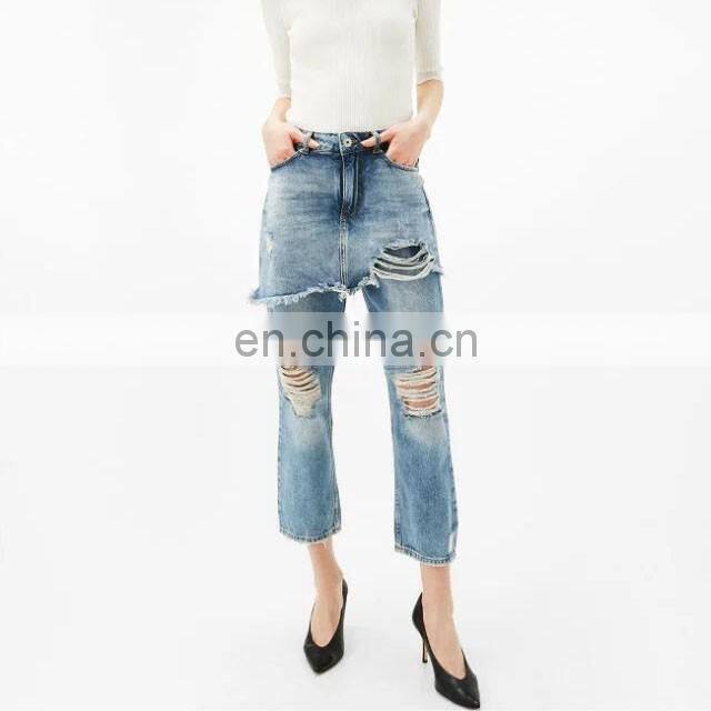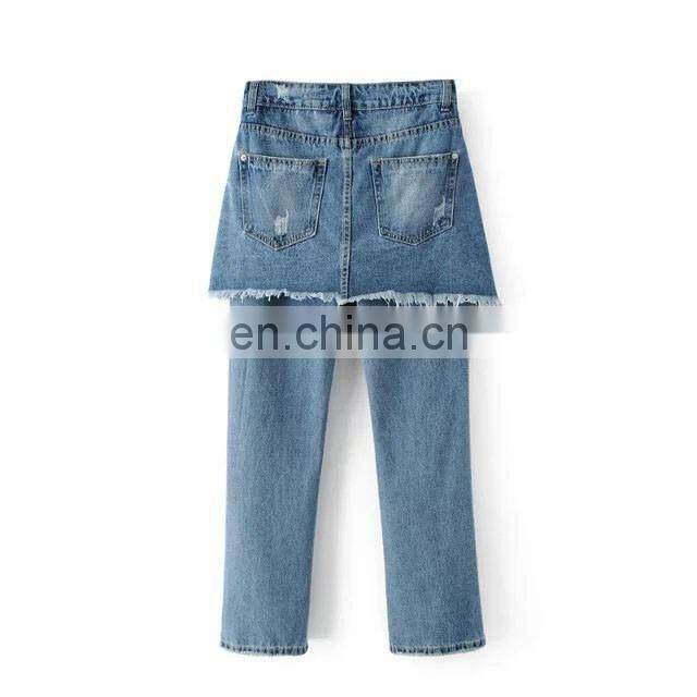 Jeans 2017 Girl Denim Holes Skirt +pants High Wasit Slim Jeans Irregular Trousers