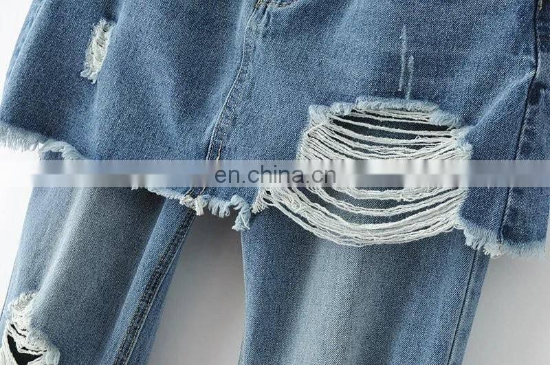Wholesale No Moq Summer Women Denim Light Blue Ripped JeansUS$ 8 - 9.75MOQ: 1 Piece