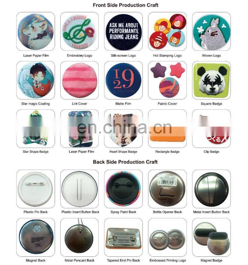 We are a Disney & Sedex Audit Factory !could offer you the most high quality products .Our exsiting badges have Round Shape ,Oval Shape ,Rectangle Shape,Heart Shape,Star Shape and Triangle Shape .Sure we also support your customized. The designs on the badges could be what ever you like .Welcome to OEM from us !