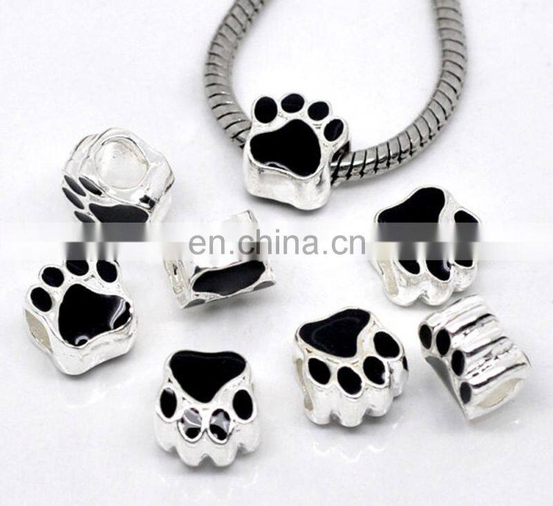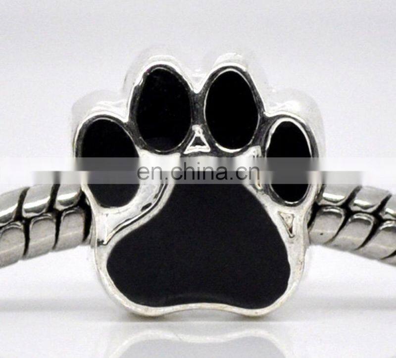| Item Name | Custom Charm Beads Silver Tone Black Enamel Dog Paw Beads |
