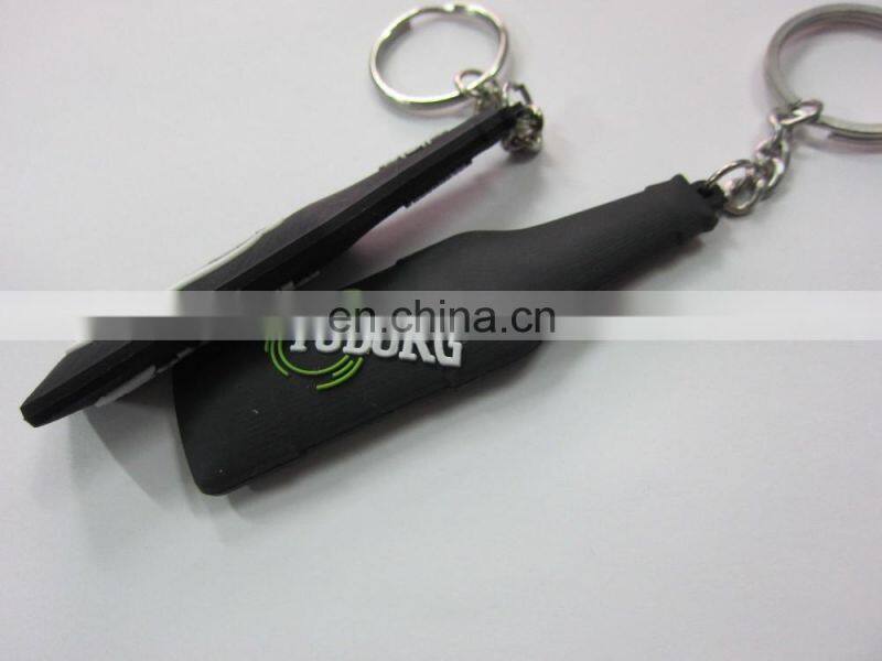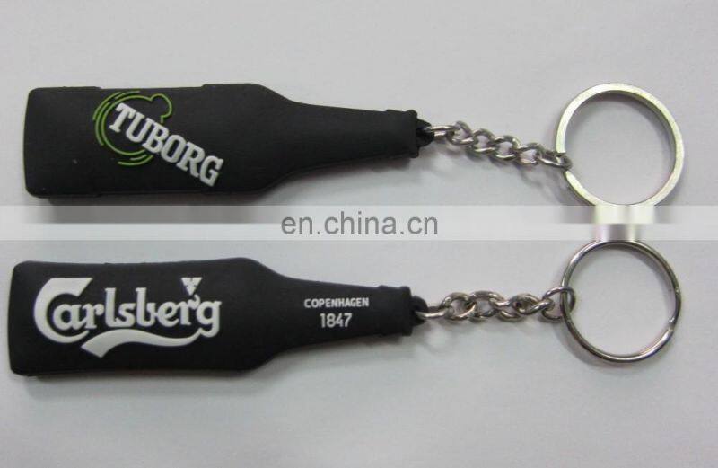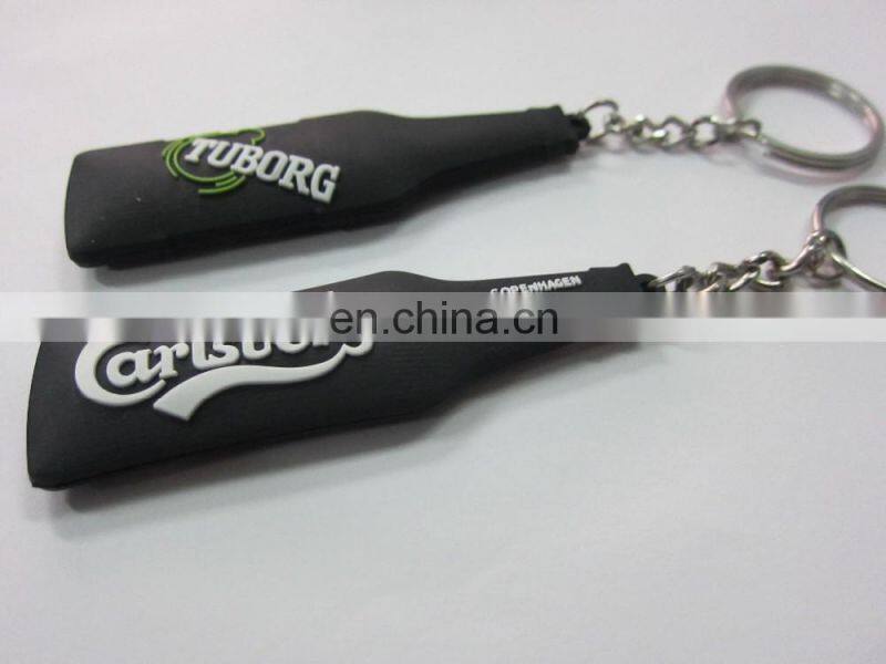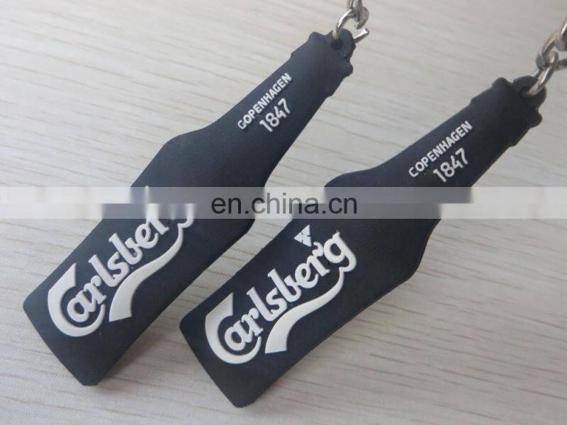 Custom Black Color Soft Rubber Pvc Keychains With Bottle Shape